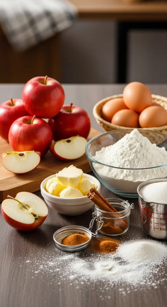 Before diving into the baking, let’s make sure you’ve got everything ready. You’ll only need a handful of pantry staples plus some fresh apples.