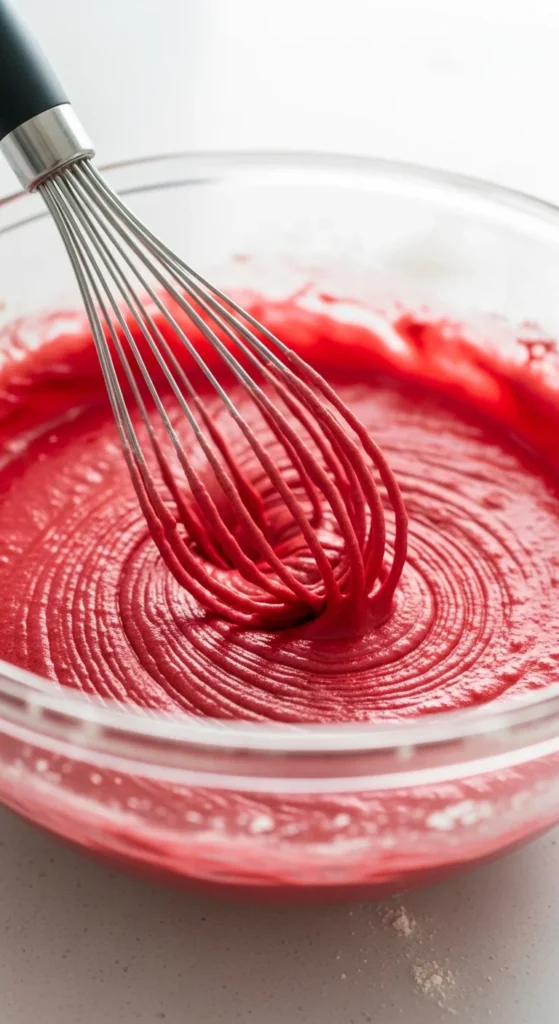 Start with 1 teaspoon, and add more if you want a deeper shade. The batter should look rich and vibrant — like red velvet itself.