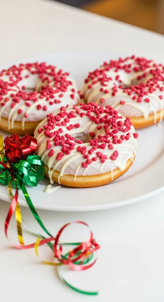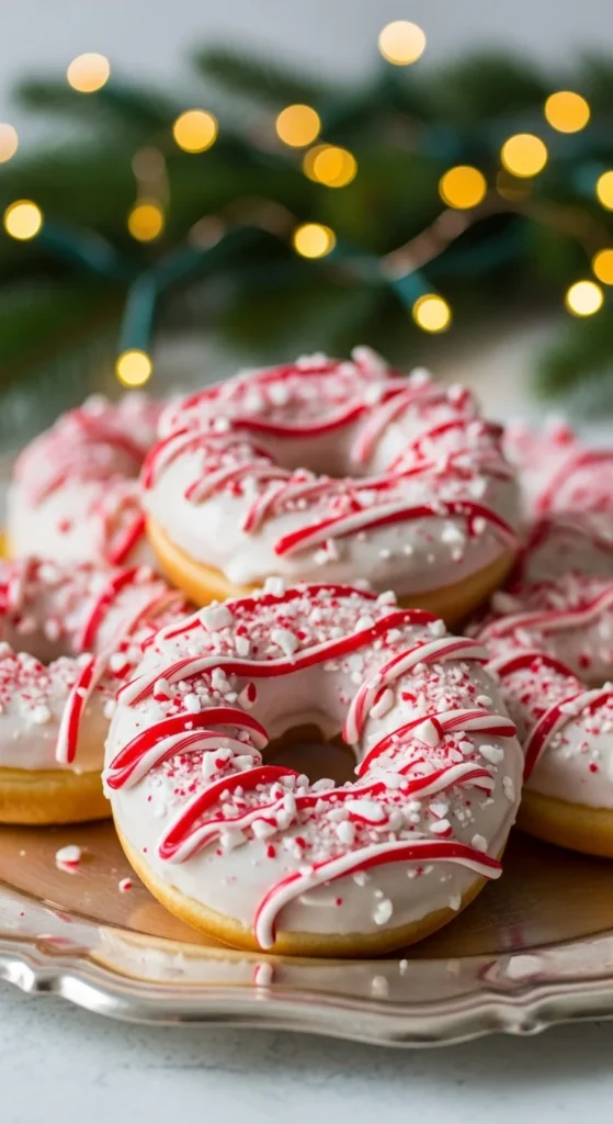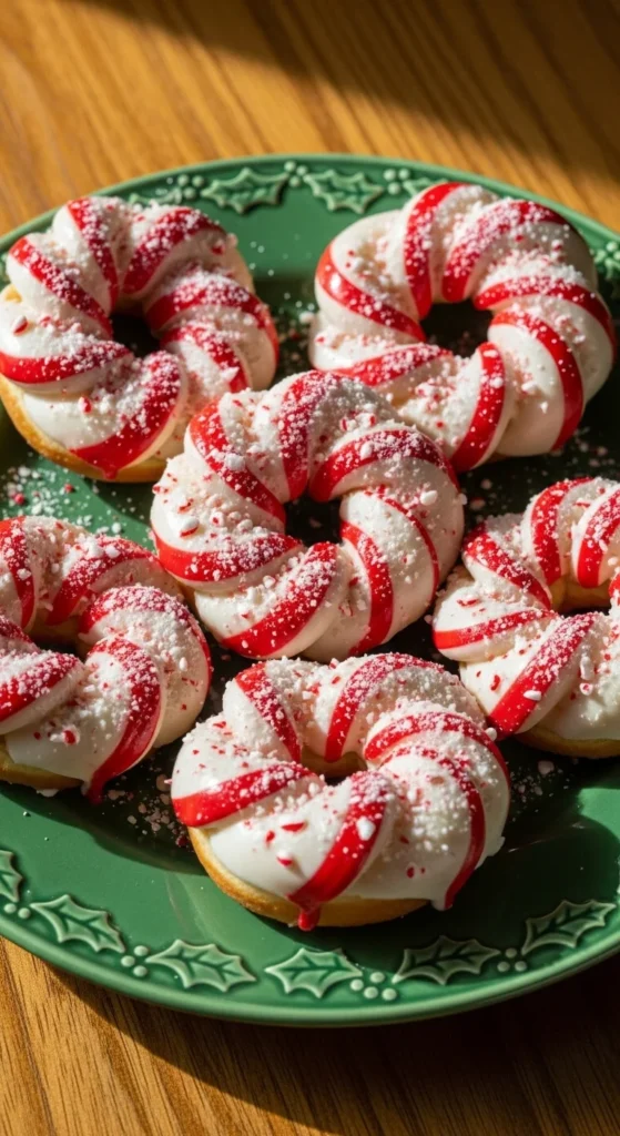 Peppermint-striped donuts make a cheerful addition to holiday desserts.