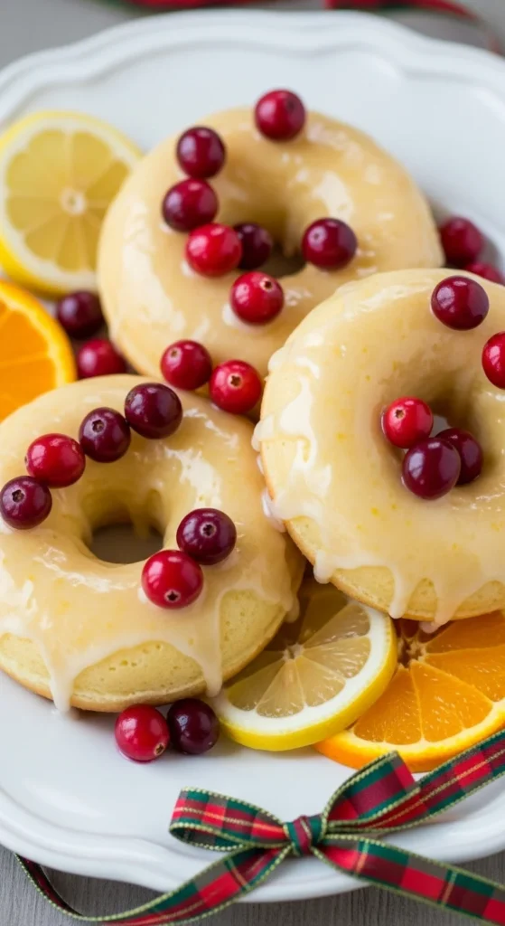 The bright citrus notes and tart cranberries make these donuts cheerful for the holidays.