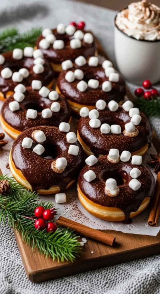 Chocolate lovers will enjoy these donuts topped with mini marshmallows like a cup of hot cocoa.
