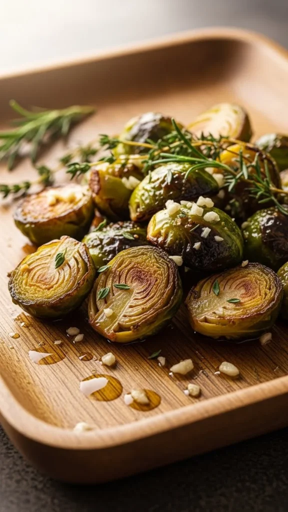These roasted Brussels sprouts are caramelized with garlic and fresh herbs, giving them a crispy exterior and tender inside.