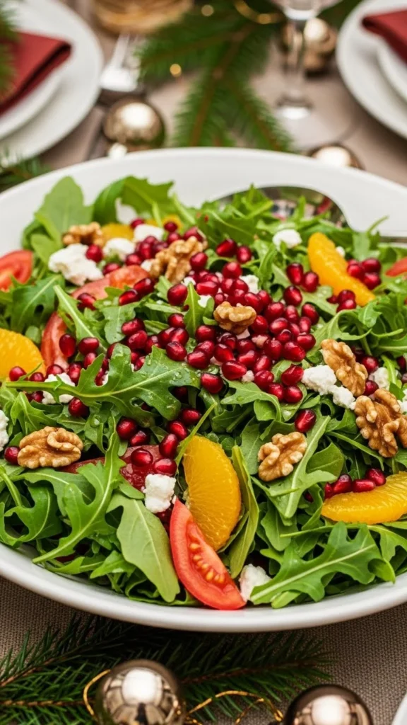 A fresh salad with pomegranate seeds, nuts, and a light vinaigrette adds brightness to your feast.