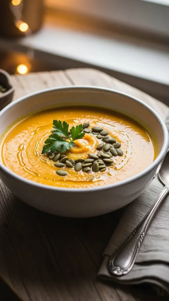 Garnish with parsley or roasted pumpkin seeds for a festive touch.