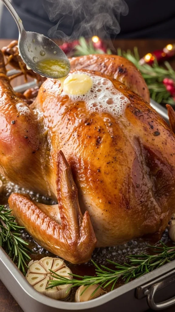 - Roast 3–3.5 hours, basting every 45 minutes.