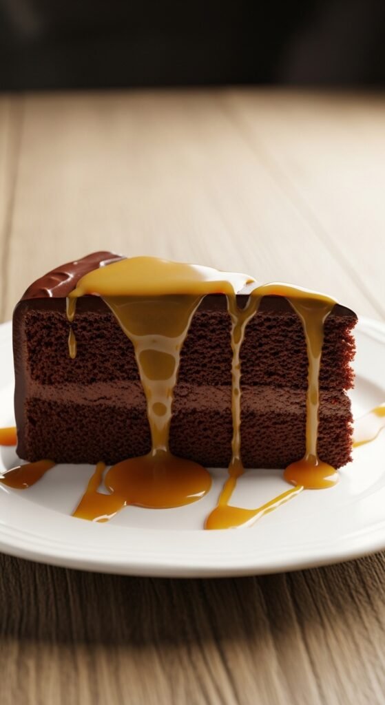 This cake pairs deep chocolate flavor with smooth caramel sweetness.
