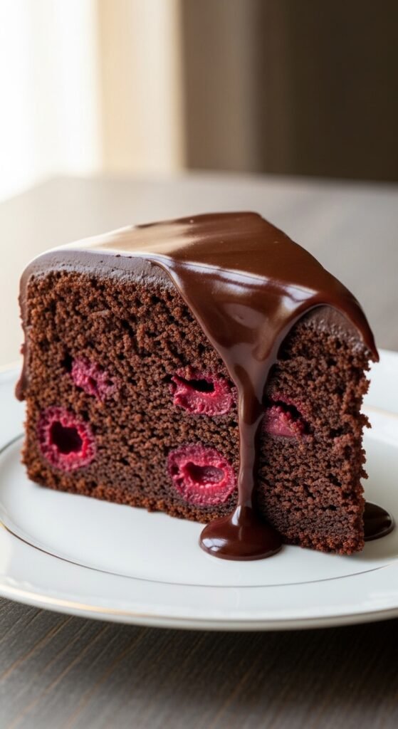 Juicy cherries add bursts of fruity sweetness inside this chocolate cake.