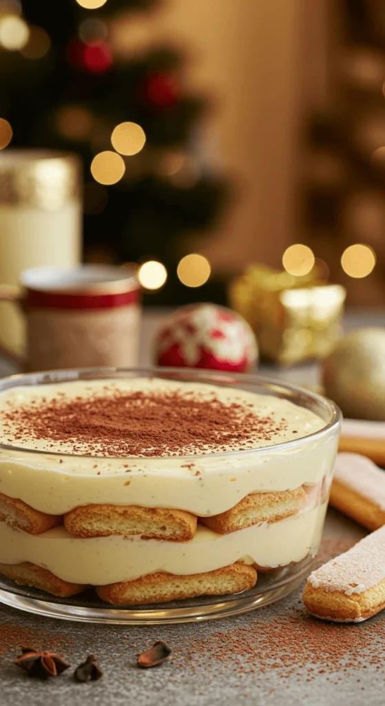This twist on a classic Italian dessert replaces coffee with eggnog. The creamy mascarpone filling gets a holiday spin that’s both light and luscious. Use store-bought ladyfingers to save time. Dust with cocoa and nutmeg before serving. It’s a dessert that looks impressive but is surprisingly simple to make.