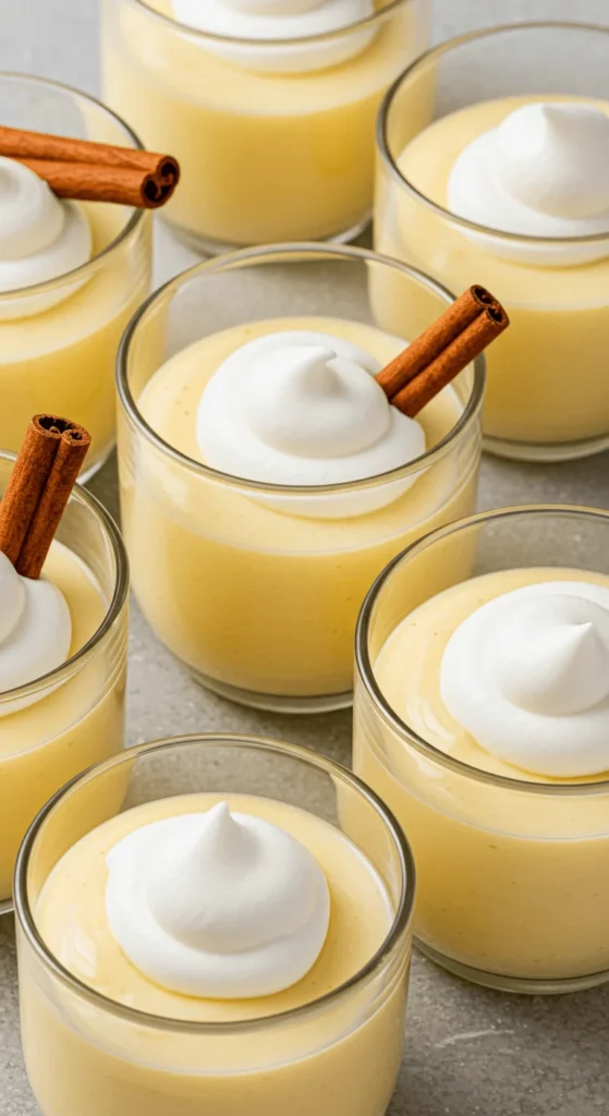 Perfect for portion control and presentation, these pudding cups are smooth and comforting. Use cornstarch, sugar, and eggnog to make a simple stovetop pudding. Chill and top with whipped cream before serving. Add crushed cookies or nuts for texture. It’s a no-fuss dessert that feels special.