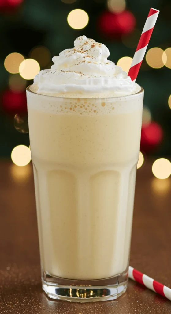 Creamy, cold, and incredibly easy to make—this milkshake is holiday happiness in a glass. Blend ice cream and eggnog for a quick dessert. Add a splash of rum extract for a grown-up version. Serve with a dollop of whipped cream and cinnamon sprinkles. Kids and adults both love it!