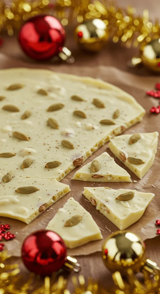 This no-bake treat is a fun holiday craft. Melt white chocolate, stir in a bit of eggnog, and spread it thin on a baking sheet. Sprinkle with nutmeg or crushed cookies before chilling. Break into shards once set. It’s a simple dessert that’s great for snacking or wrapping as edible gifts.