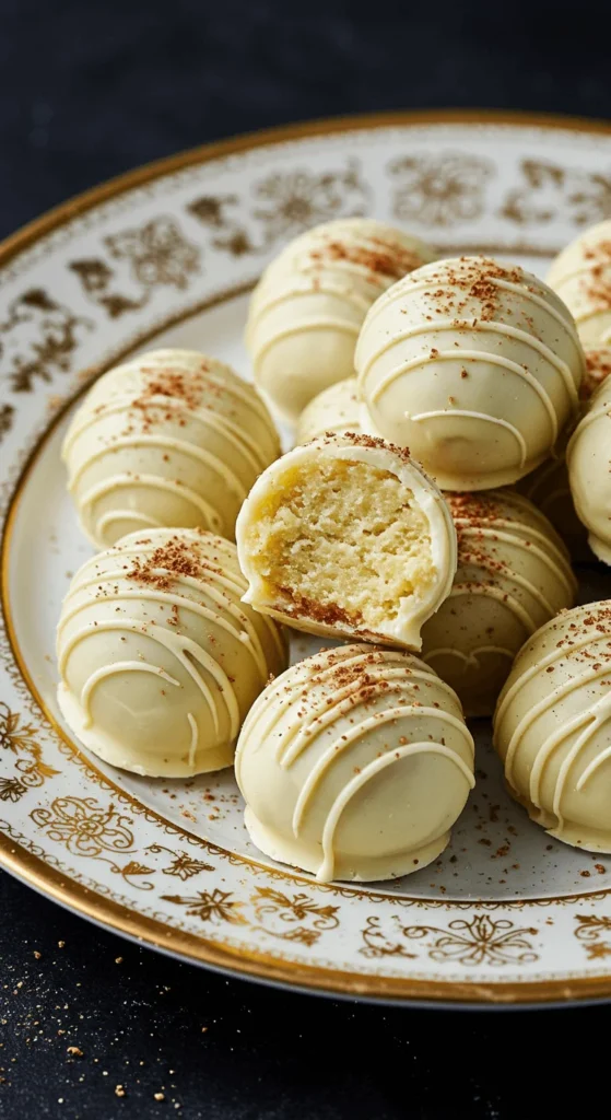 Smooth and creamy, these truffles melt in your mouth. Made with white chocolate, butter, and eggnog, they’re rich but easy to prepare. Chill the mixture, roll into balls, and coat with chocolate or cocoa powder. Keep them refrigerated until serving. They make beautiful homemade gifts or after-dinner treats.