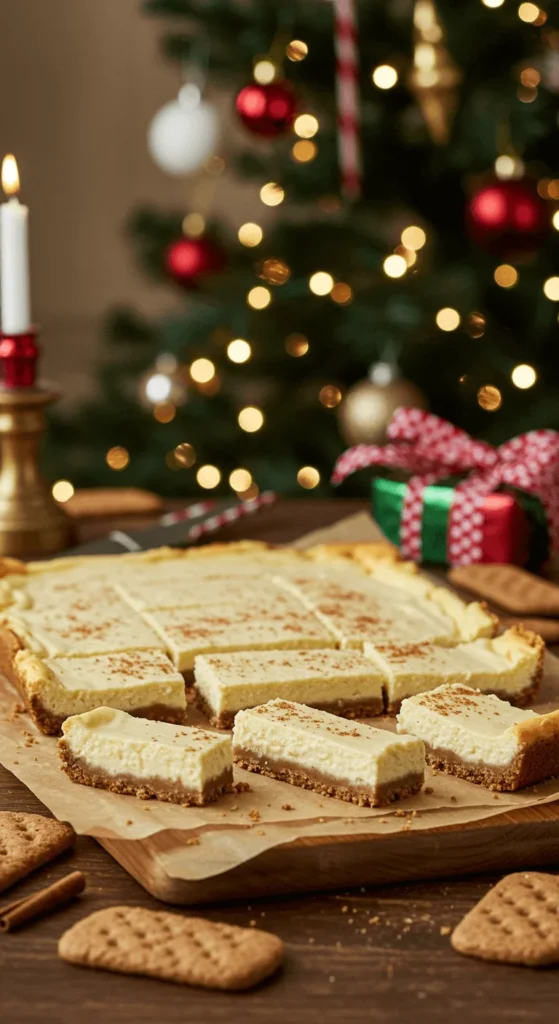 All the flavor of cheesecake but in an easy, handheld form. These bars are creamy, spiced, and ideal for potlucks. Use a simple graham cracker base and pour in your eggnog-flavored filling. Bake until just set and chill before slicing. A drizzle of caramel or sprinkle of nutmeg finishes them beautifully.