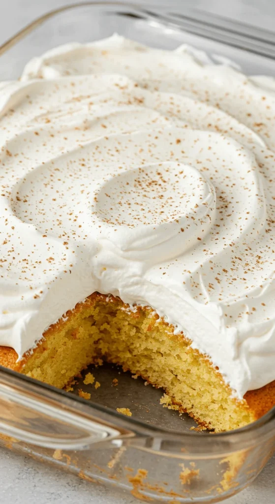 This cake is light, creamy, and incredibly easy to make. After baking, poke holes all over and pour in a sweet eggnog mixture. Let it soak up for a few hours before topping with whipped cream. The result is a soft, flavorful dessert that feels festive without much work. Store it chilled for best results.