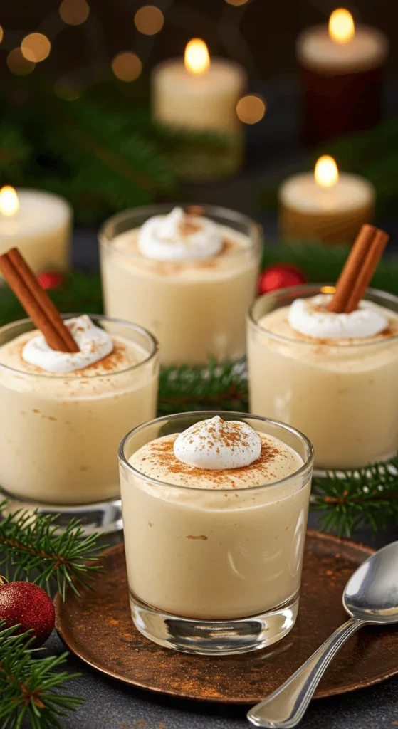 This light, airy dessert captures the creamy charm of eggnog in spoonable form. Whip heavy cream with sugar, then fold in eggnog for a silky texture. Chill for a few hours before serving. Top with whipped cream and nutmeg for extra flair. It’s elegant, simple, and perfect for ending a holiday meal on a sweet note.