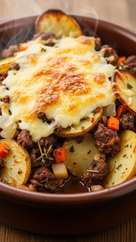 A classic dish layered with meat, veggies, and creamy potatoes.