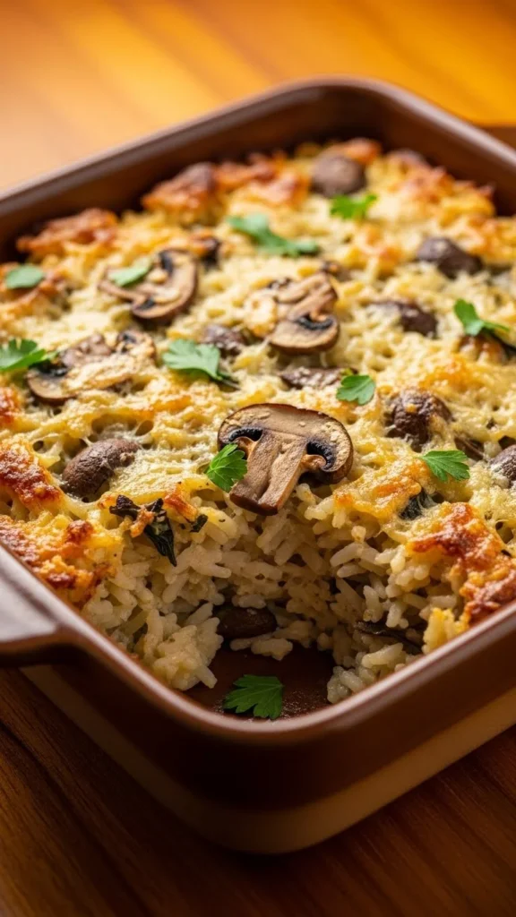 3. Mix soup, milk, rice, mushrooms, salt, and pepper.