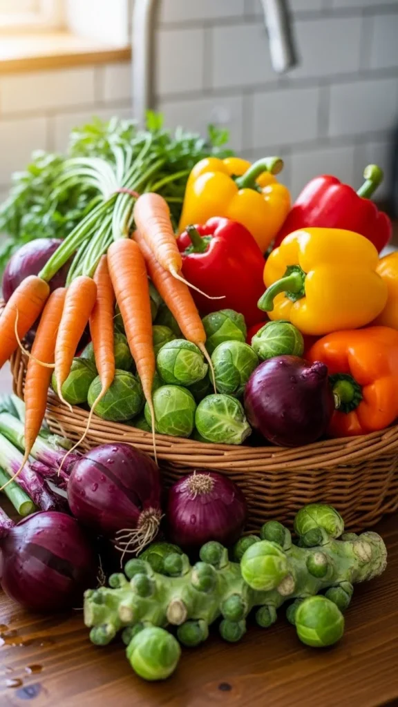 - Wash and trim – Make sure all veggies are clean and any tough stems or leaves are removed.
