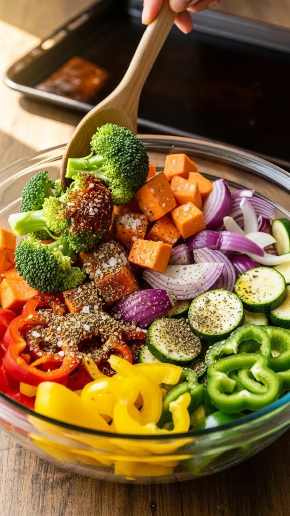 - Optional sweet touch – Drizzle a bit of maple syrup or honey over the veggies before roasting. This helps caramelize and brings out their natural sweetness.