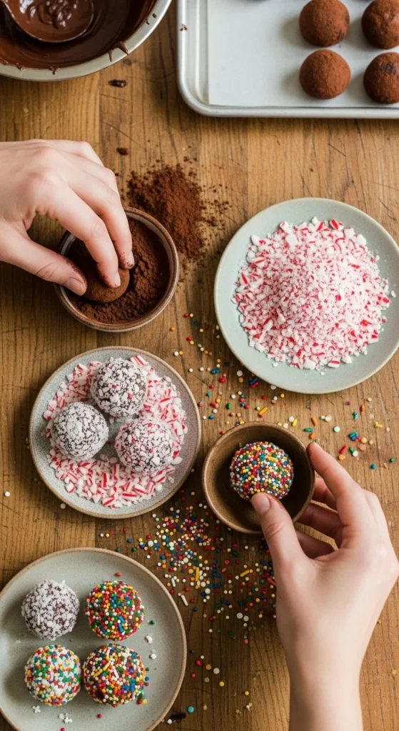 Simply roll each truffle in your chosen coating and return it to the tray. Chill again for 15–20 minutes to set.