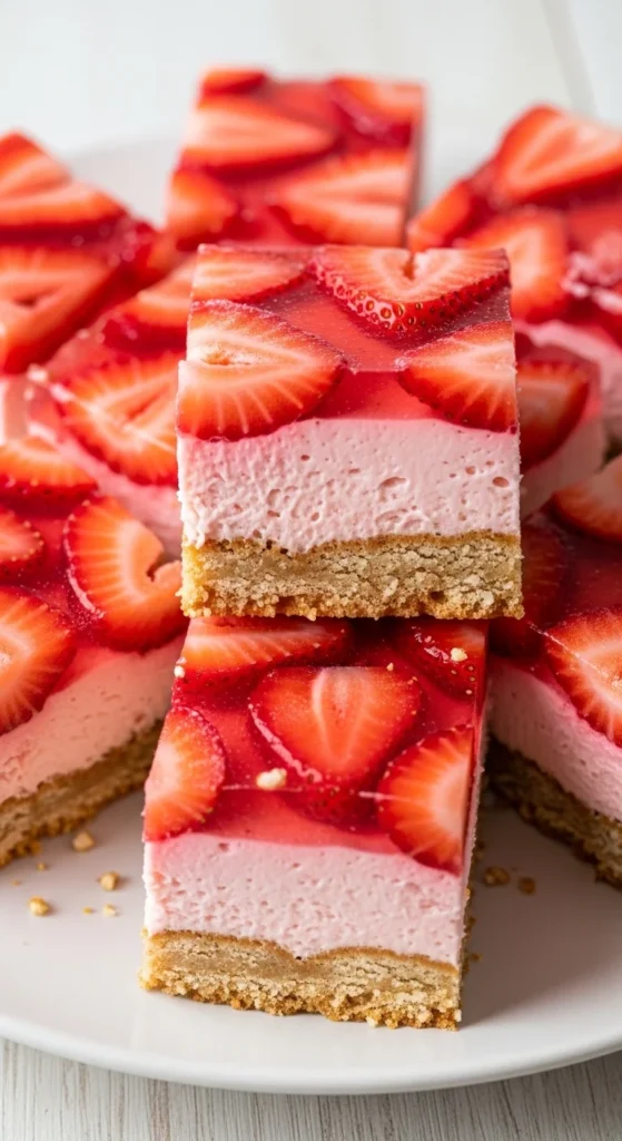 3. Dissolve gelatin, add strawberries, pour over filling.