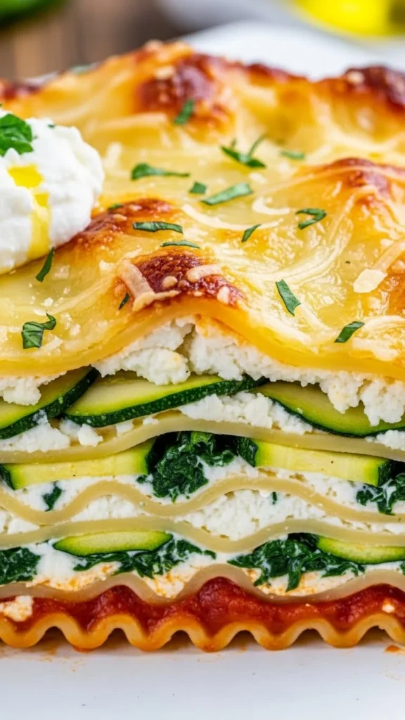 Seasonal vegetables layered with cheese make this lasagna fresh and flavorful.