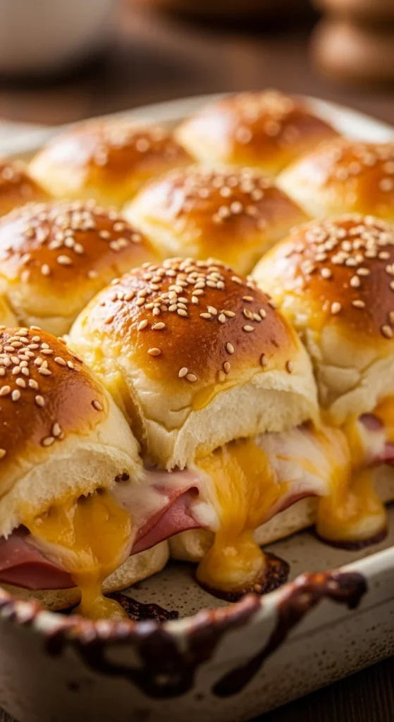 Soft rolls, savory ham, and melty cheese baked together for easy sharing.