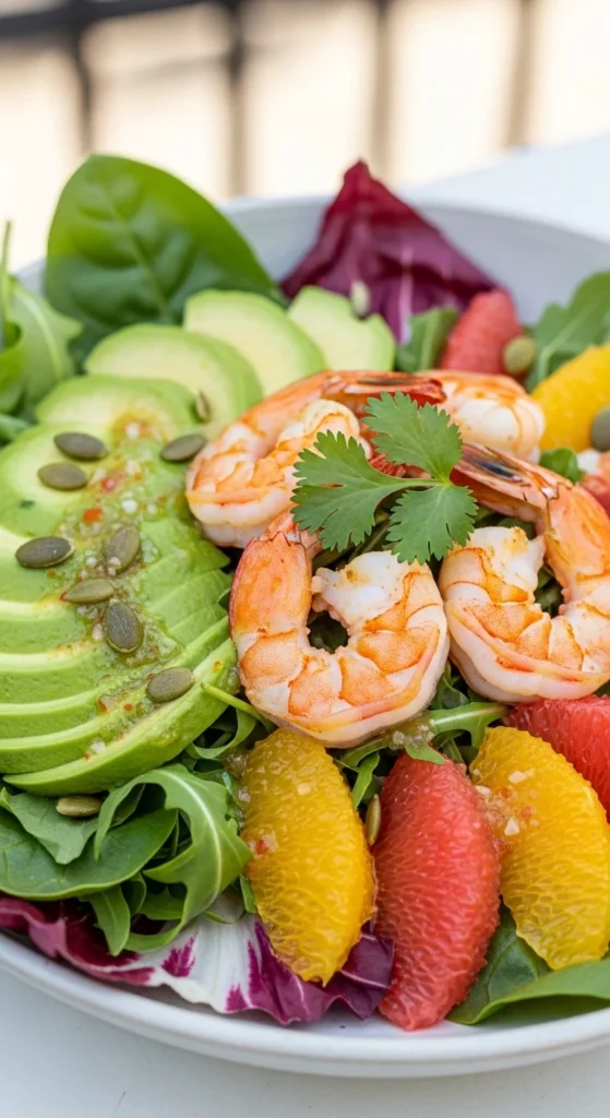 - Add shrimp, avocado, citrus.