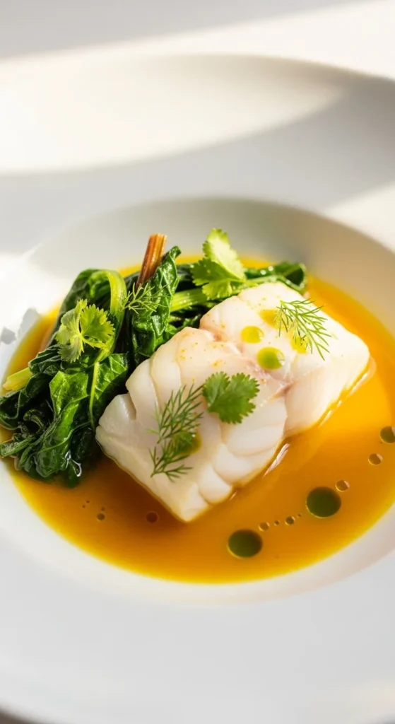 4. Turmeric Poached Cod with Greens