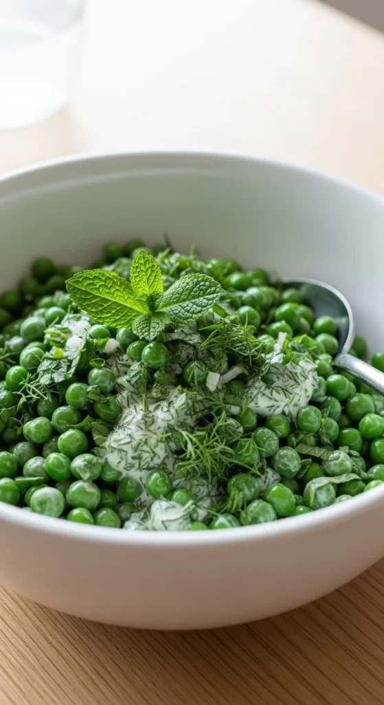 This chilled pea salad is smooth, fresh, and lightly tangy.