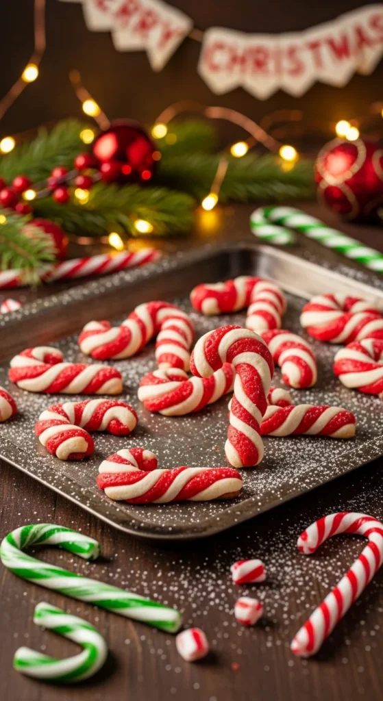 - Shape into candy canes.