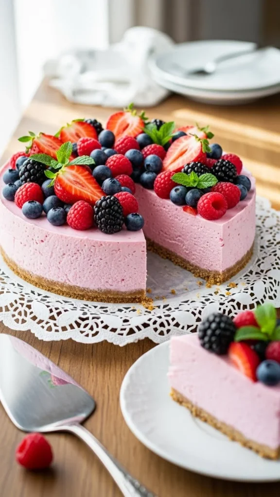 7. Pink Berry No-Bake Cheesecake