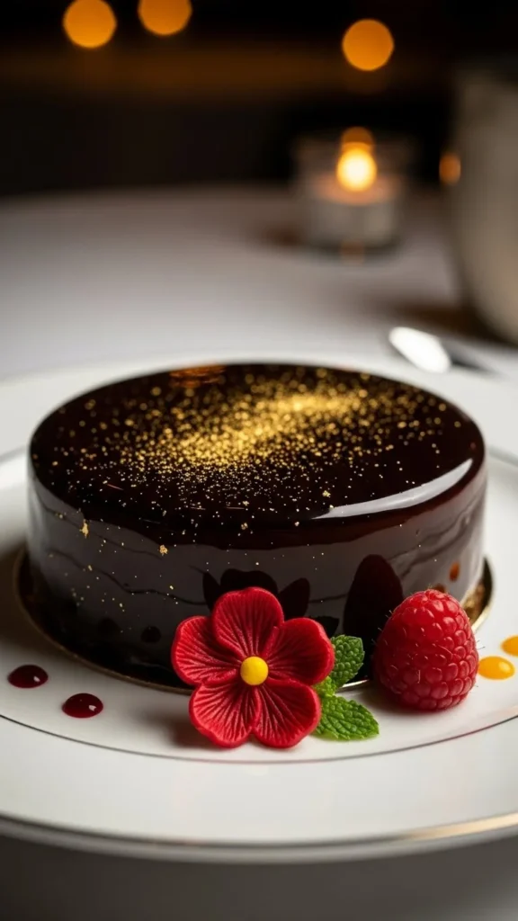 A gorgeous dessert with deep chocolate and bright berry flavors.