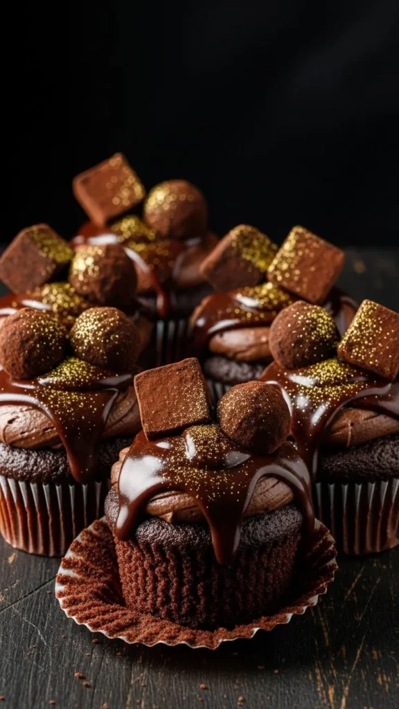 A decadent chocolate treat topped with silky ganache and truffle candy.