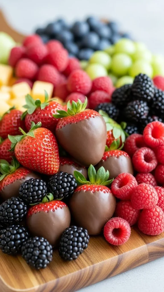 A combination of berries and chocolate creates a rich, indulgent fruit board.