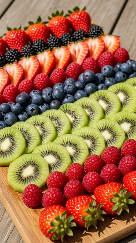 A rainbow of berries and kiwi makes this board visually stunning and refreshing.