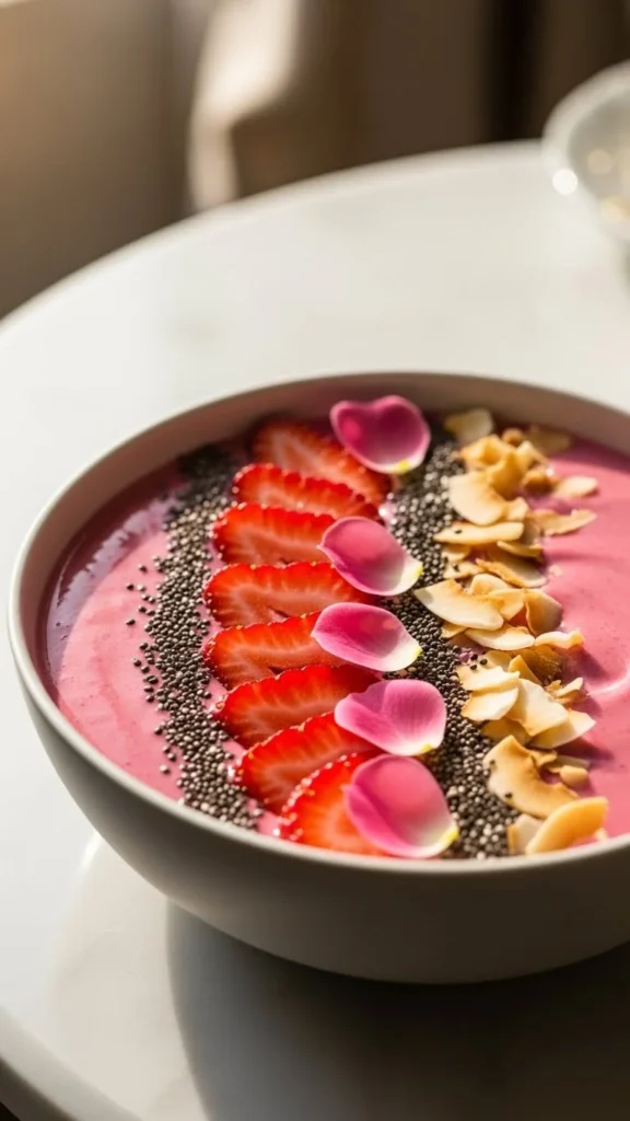 1. Strawberry Rose Smoothie Bowl