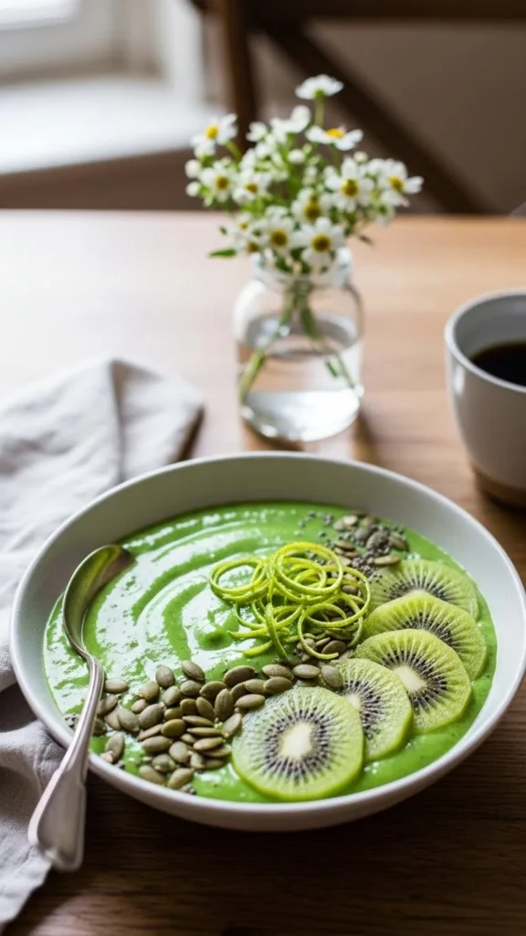 - Toppings: kiwi slices, pumpkin seeds, lime zest