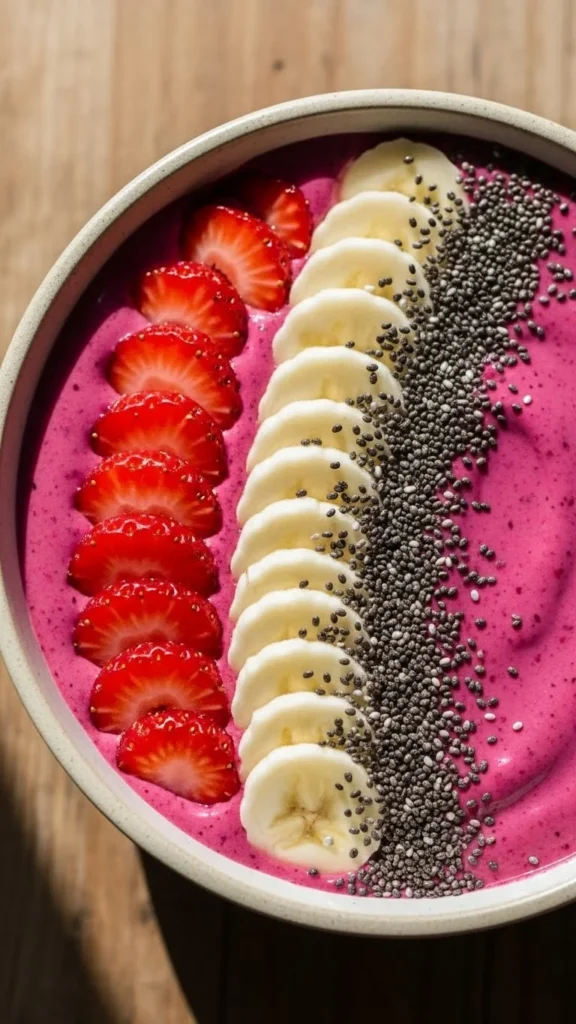 - Toppings: sliced strawberries, banana slices, chia seeds