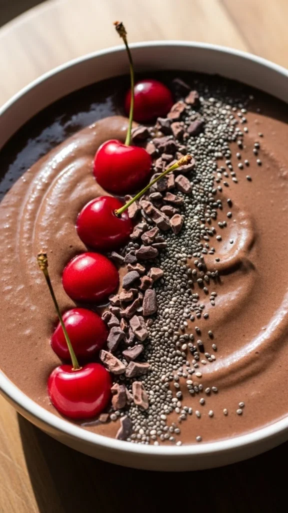 - Toppings: fresh cherries, cacao nibs, chia seeds